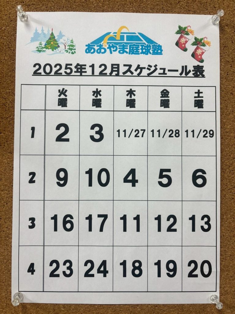 12月13日(土)19:00からのナイターレッスンは、雨天のため中止します。